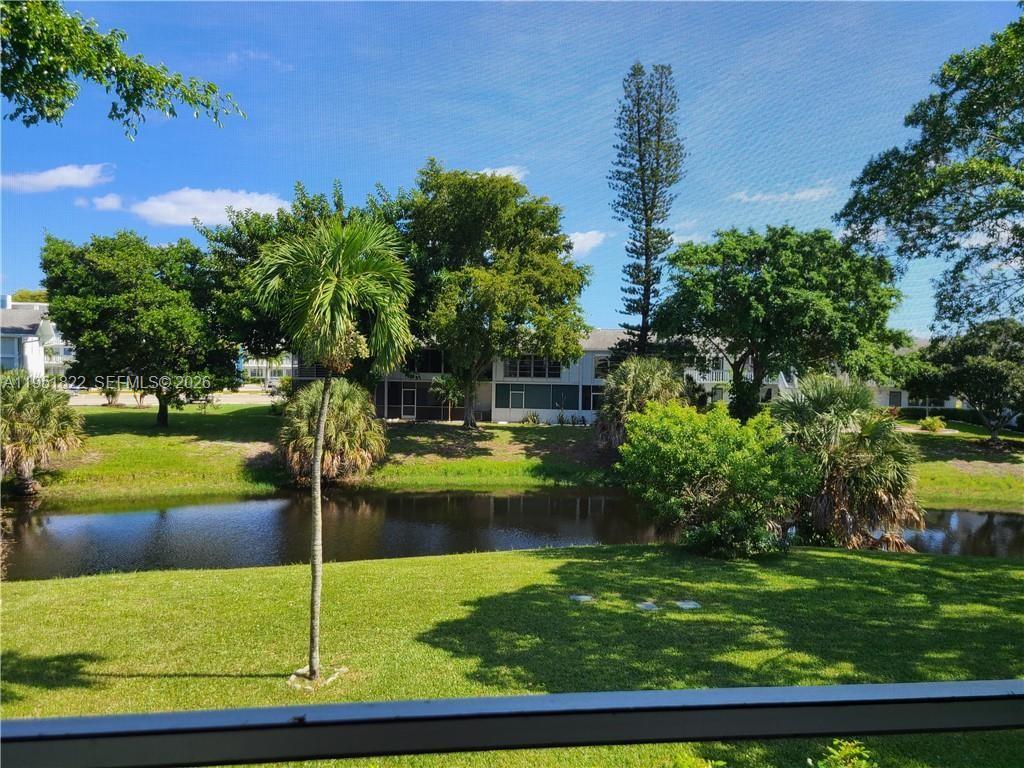 DO NOT MISS OUT ON THIS ONE!! CHARMING EXTREMELY WELL MAINTAINED 1 BEDROOM, 1.5 BATH SECOND FLOOR CONDO. TILE AND LAMINATE FLOORING. UPDATED VANITIES AND TOILETS. FULLY FURNISHED READY TO MOVE IN. NEW A/C WINDOW UNIT. PERFECT SUN EXPOSURE TO ENJOY A ROMANTIC DINNER OR ENTERTAIN FRIENDS & FAMILY ON YOUR PRIVATE SCREENED-IN PATIO OVERLOOKING A RELAXING WATER VIEW. BUILDING OFFERS A LIFT FOR EASY SECOND FLOOR ACCESS. BBQ AND PIC NIC AREA BY THE WATER.ENJOY CENTURY VILLAGE ACTIVE 55+ RESORT STYLE LIVING. OFFERS MANY ACTIVITIES & ACTIVITIES INCLUDING A LOCAL BUS SERVICE, CLUBHOUSE, TENNIS, BILLIARD ROOM, ART CLASSES, GYM, & MUCH MORE. LOCATED MINUTES TO THE BEACH , RESTAURANTS & SHOPPING. WELCOME TO SOUTH FLORIDA LIVING! MUST SEE!
